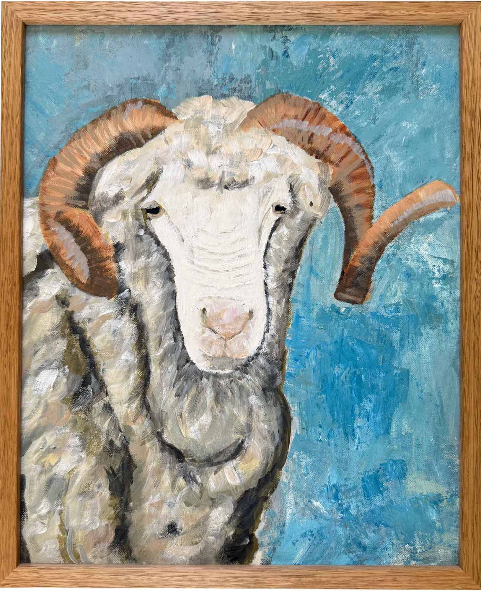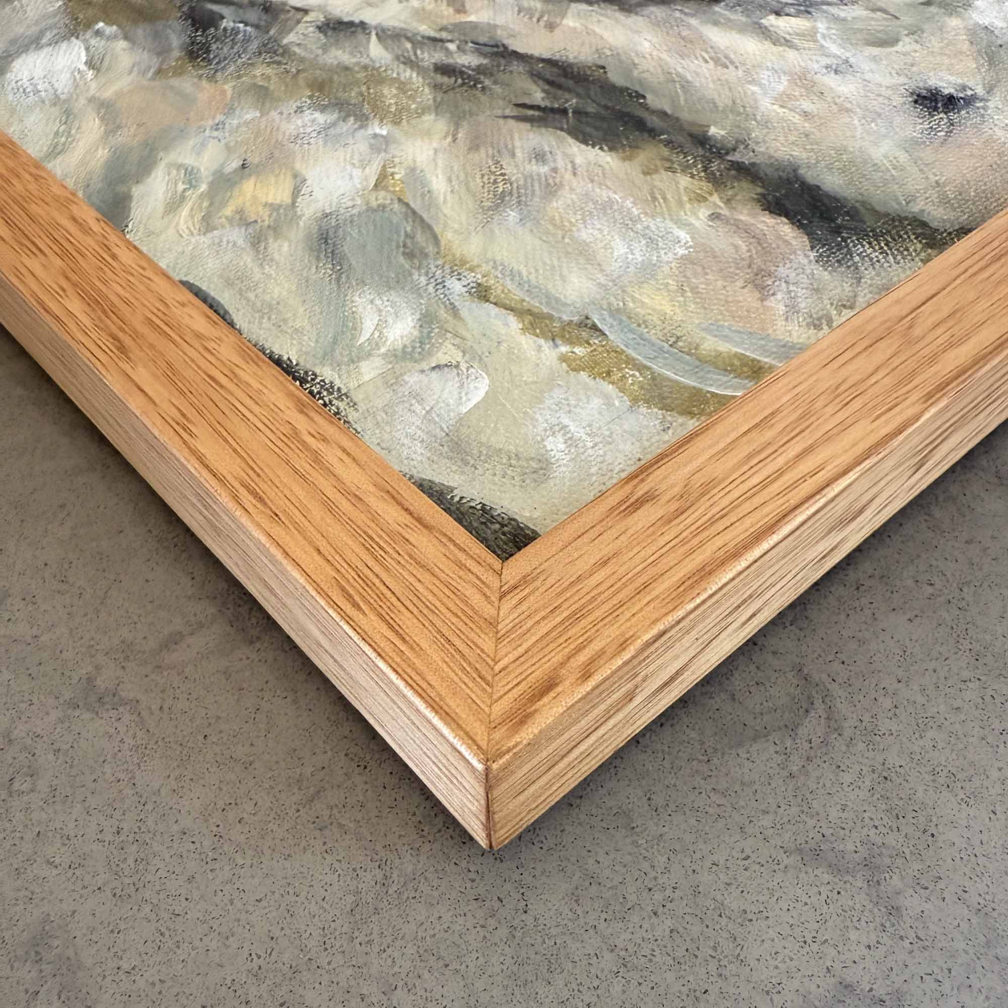 Acrylic on canvas, in Tasmanian oak frame. Painting in frame dimensions: 42.75 cm (w) x 52.60 cm (h) x 2 cm (d). NOTE: Although all care is taken when photographing products, colours in photos may vary and not be an exact representation.